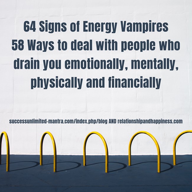 58 Ways to deal with people who drain you – all the one sentence tips have detailed do-it-yourself blogs/articles/answers in my two websites and in my Quora page – 900+ articles & 2500 answers