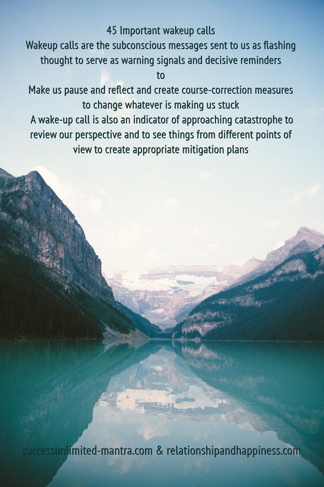 Wakeup calls are the subconscious messages sent to us as a flashing thought to make us pause and reflect and create course-correction measures to change whatever is making us stuck.