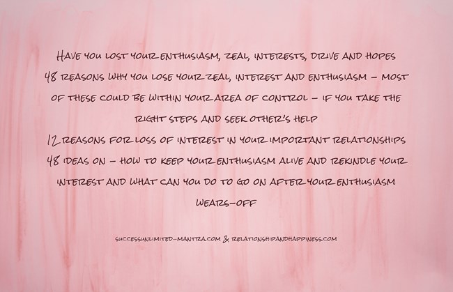 -48 reasons why you lose your zeal, interest and enthusiasm - most of these could be within your area of control - if you take the right steps and seek other's help