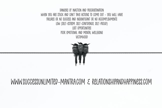 Why inaction is dangerous - Inaction is very expensive - as inaction can increases demotivation and can make you invent excuses and blames and also filling you with fear – on the other hand -taking action will dispel fear and doubt plus it will also fill you with the ingredients of success.