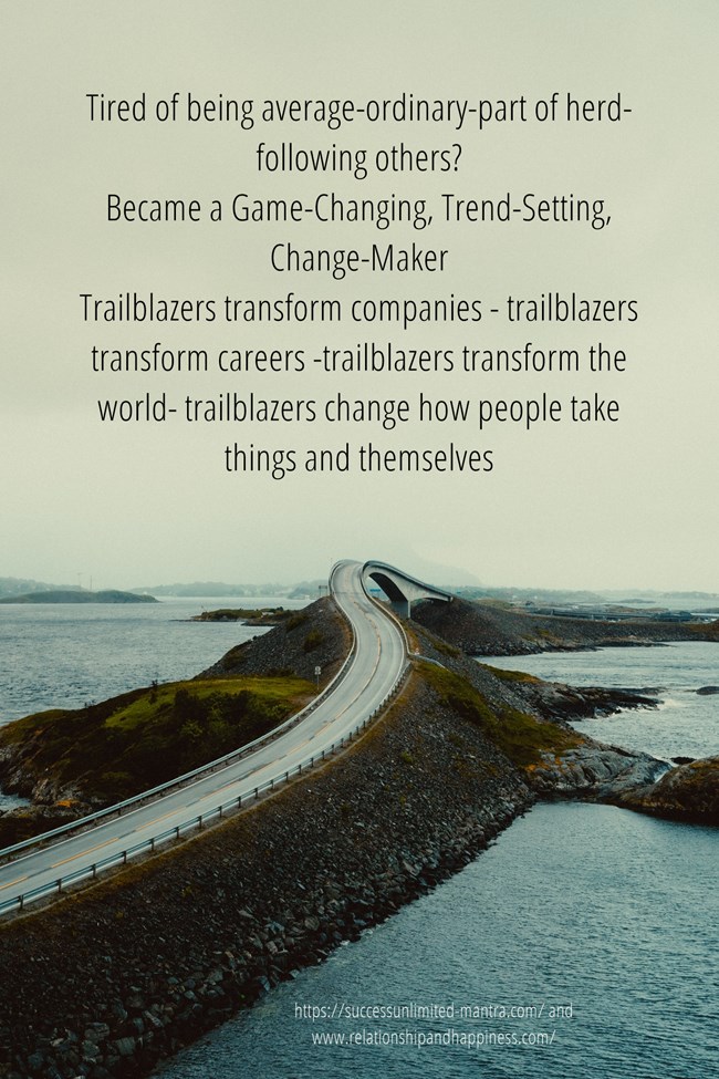 Trailblazers transform companies - trailblazers transform careers -trailblazers transform the world- trailblazers change how people take things and themselves.